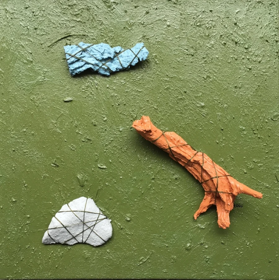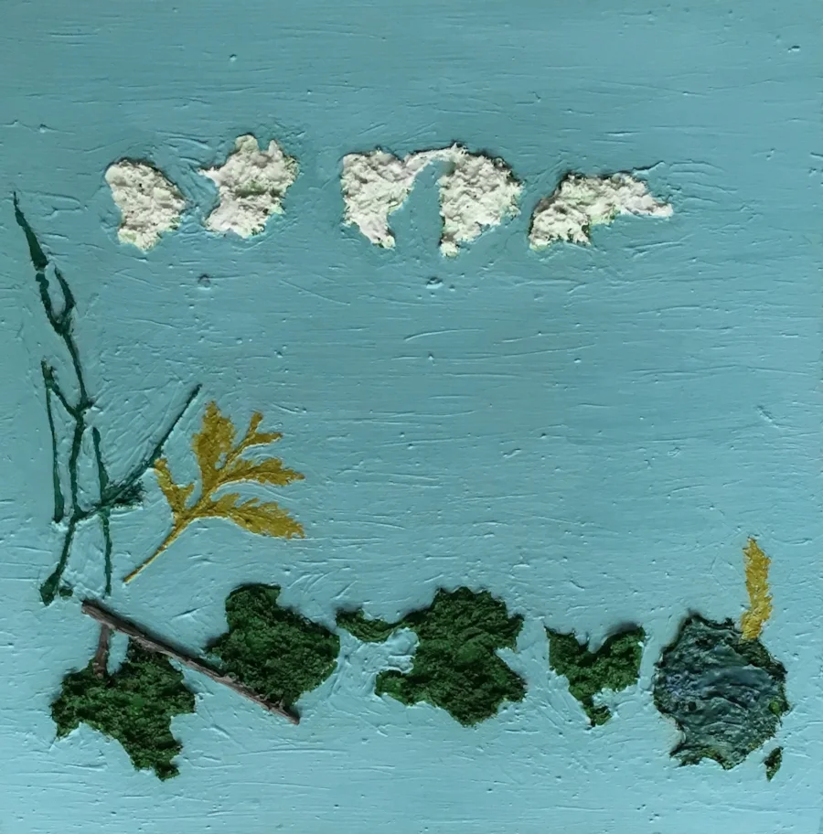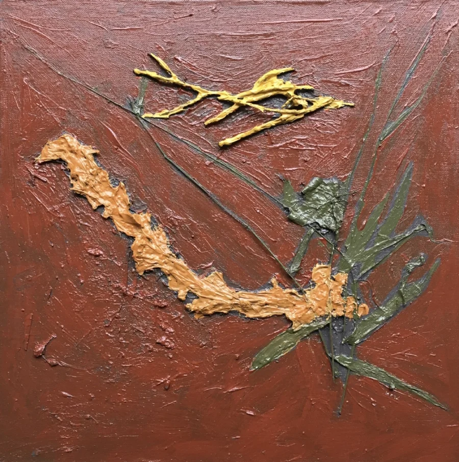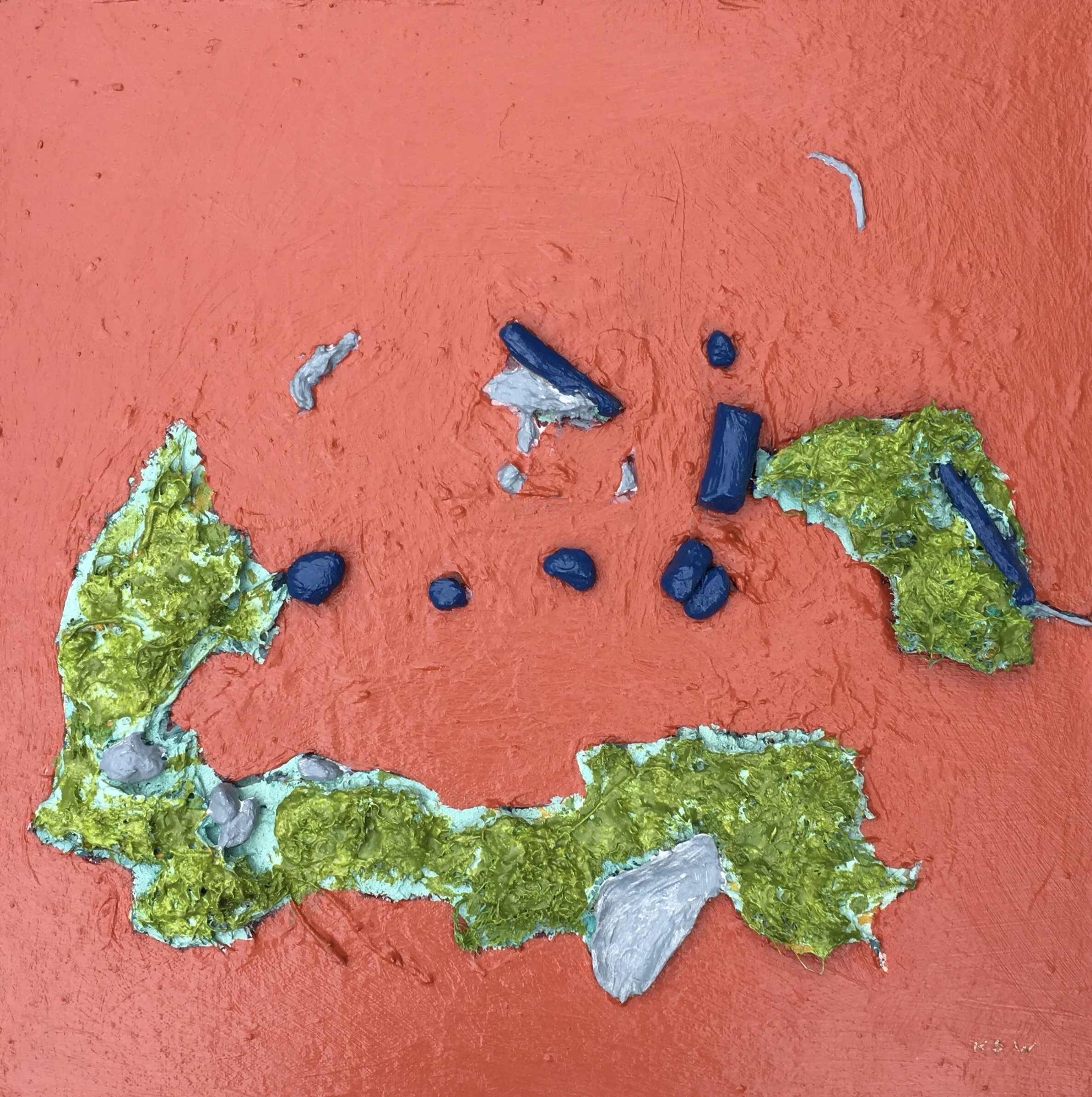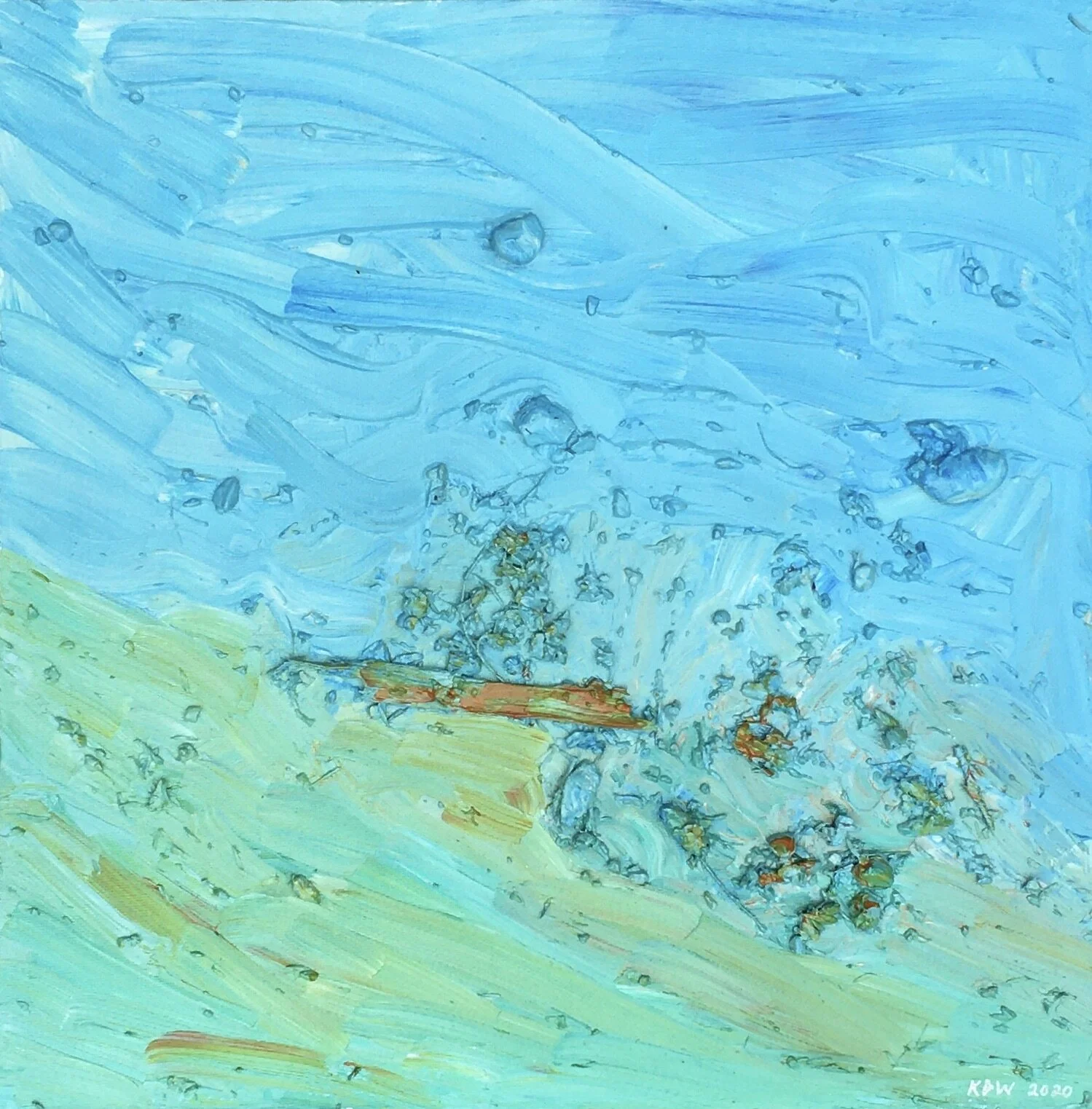 These artworks were apart of the “Land and See” exhibit for the 2021 Garage Gallery Benmiller Season. Of the 6 panel boxes below, the first one was painted outside the fenced area of the beach while it was being repaired from the winter thaw. But as it turned out, those same fences were then used to keep people from entering the beach because of the covid restrictions. The remainder of the 5 panel boxes below were completed intuitively in the studio with the materials from the above raked debris and detritus on the beach road near Cove Beach, Goderich ON.