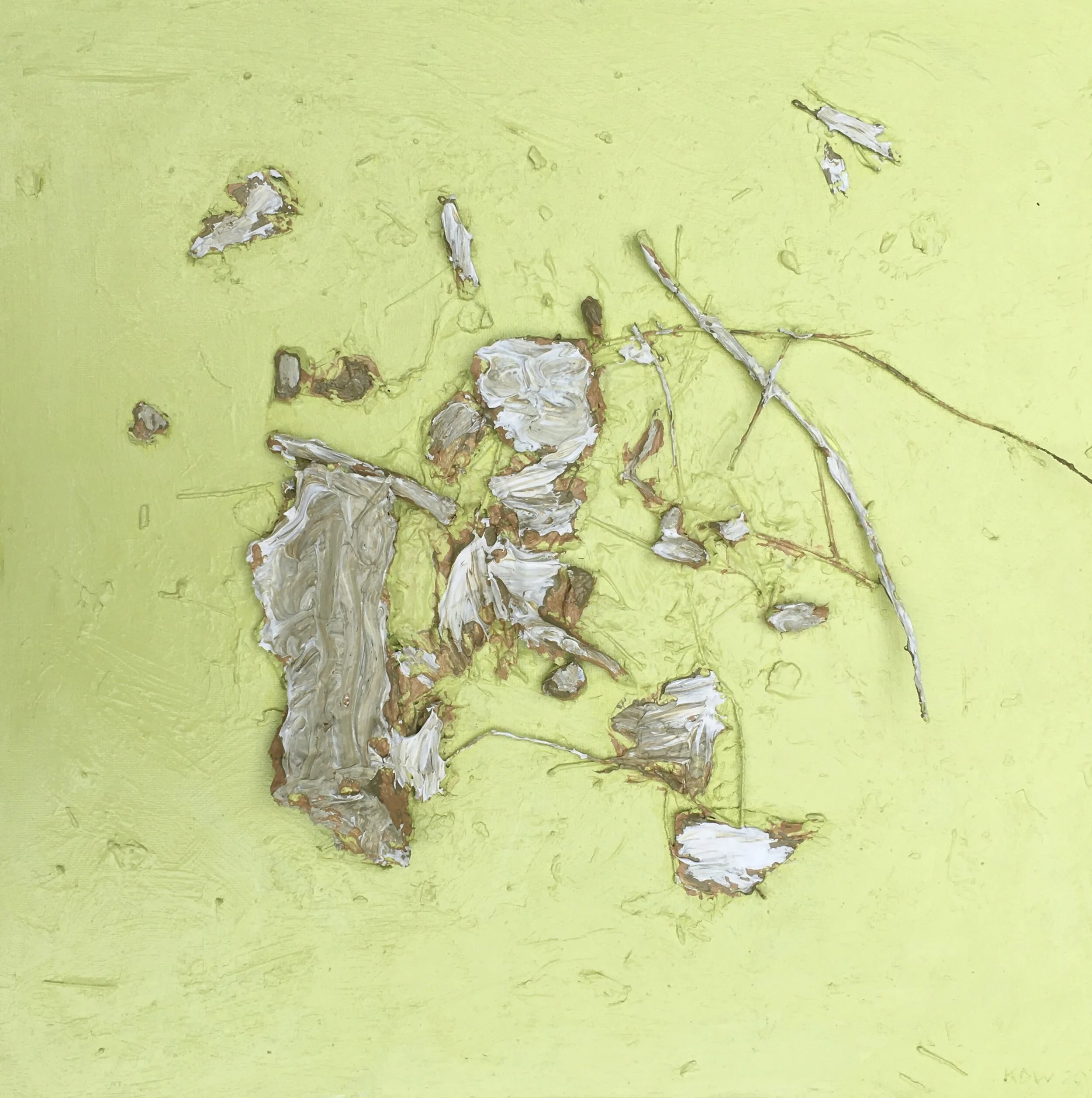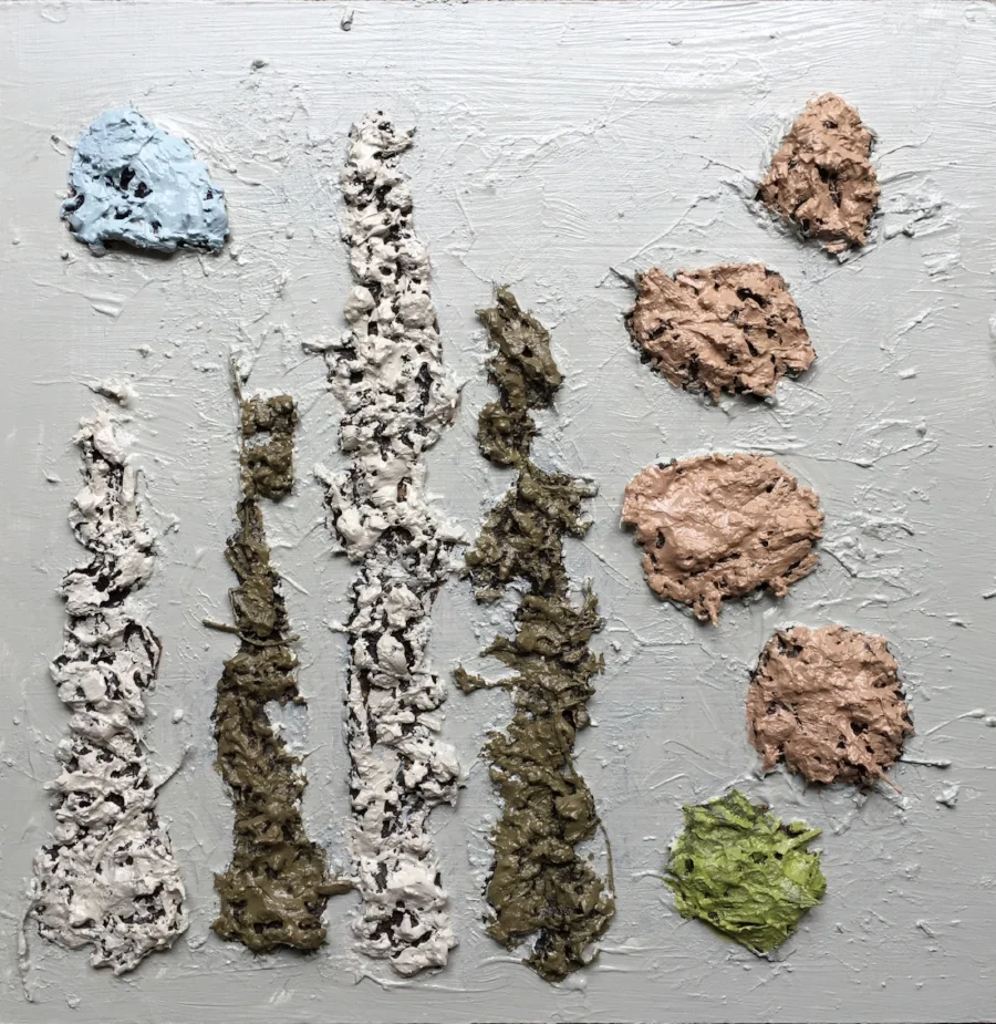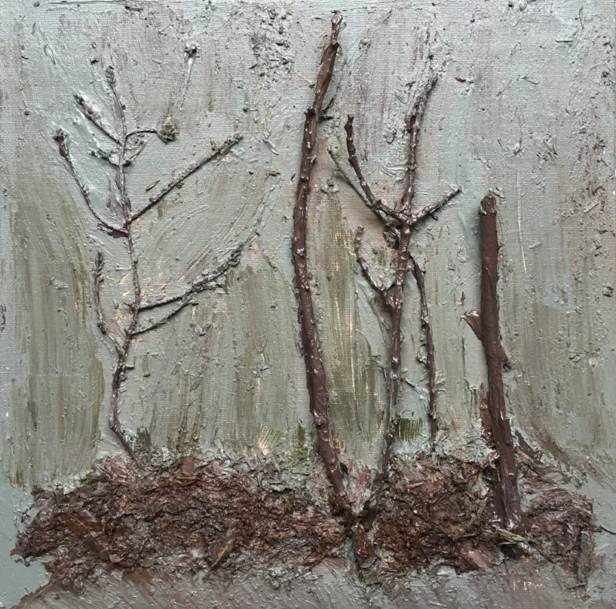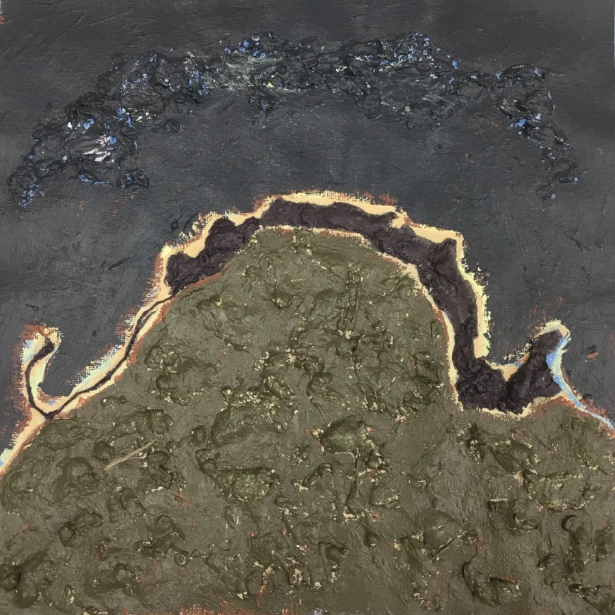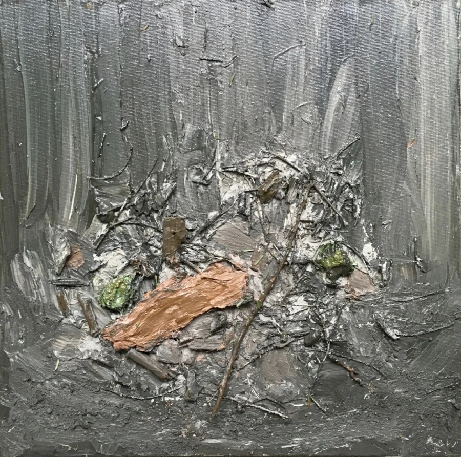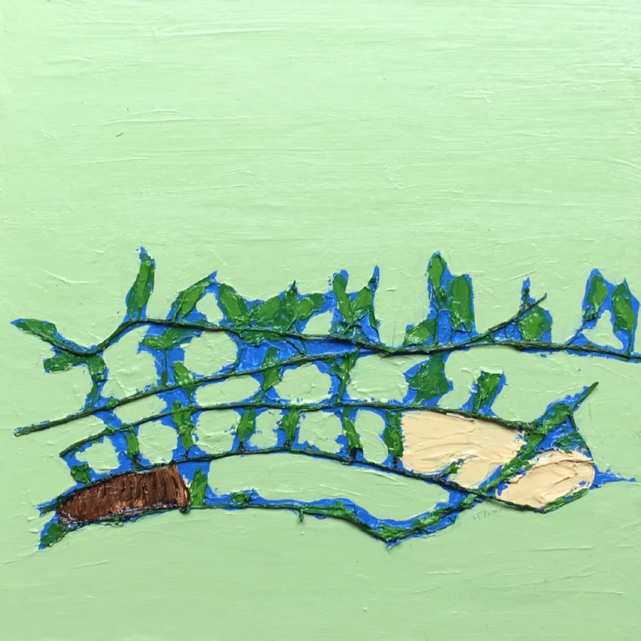 These artworks were apart of the “Land and See” exhibit for the 2021 Garage Gallery Benmiller Season. Of the 6 panel boxes below, the first one was painted outside the fenced area of the beach while it was being repaired from the winter thaw. But as it turned out, those same fences were then used to keep people from entering the beach because of the covid restrictions. The remainder of the 5 panel boxes below were completed intuitively in the studio with the materials from the above raked debris and detritus on the beach road near Cove Beach, Goderich ON.