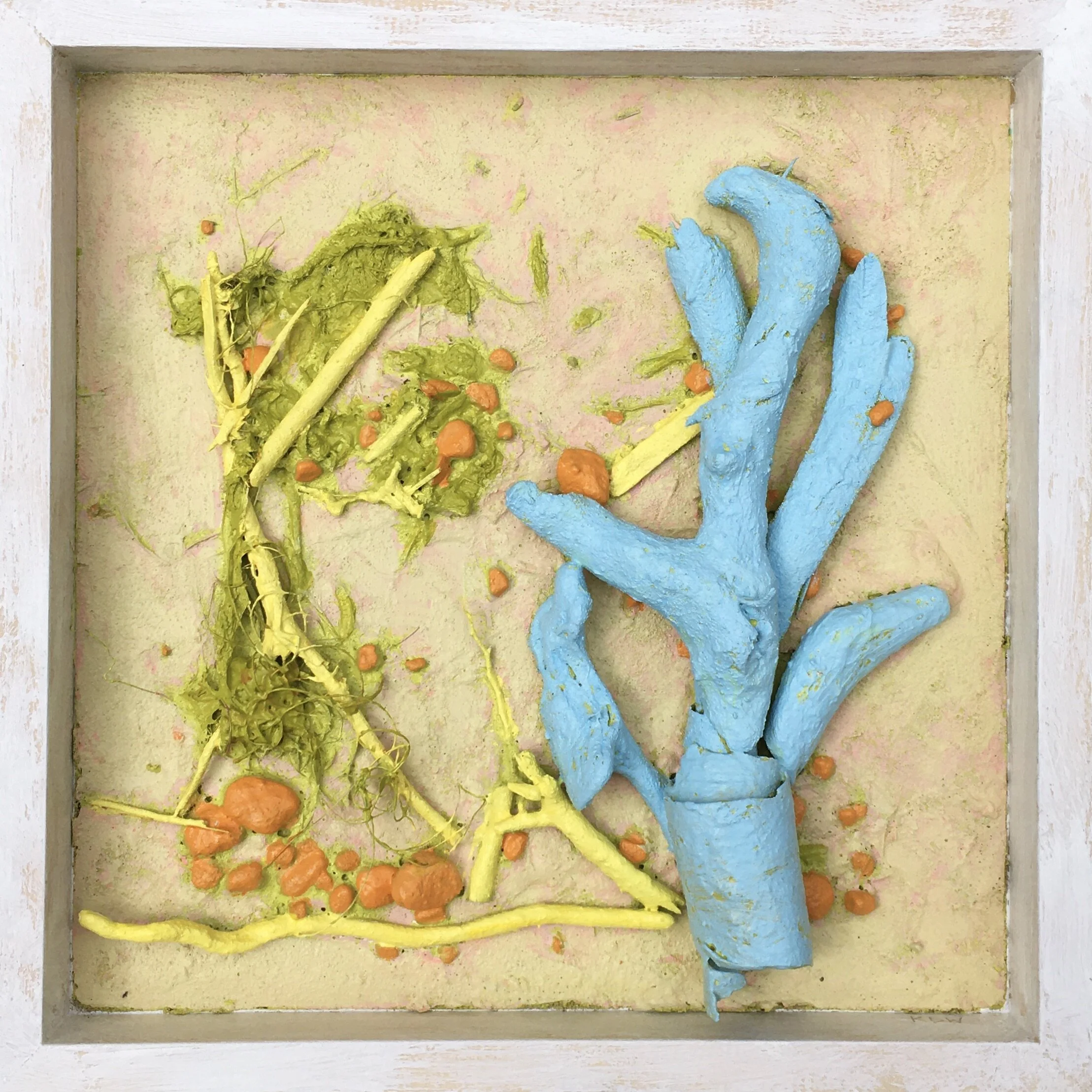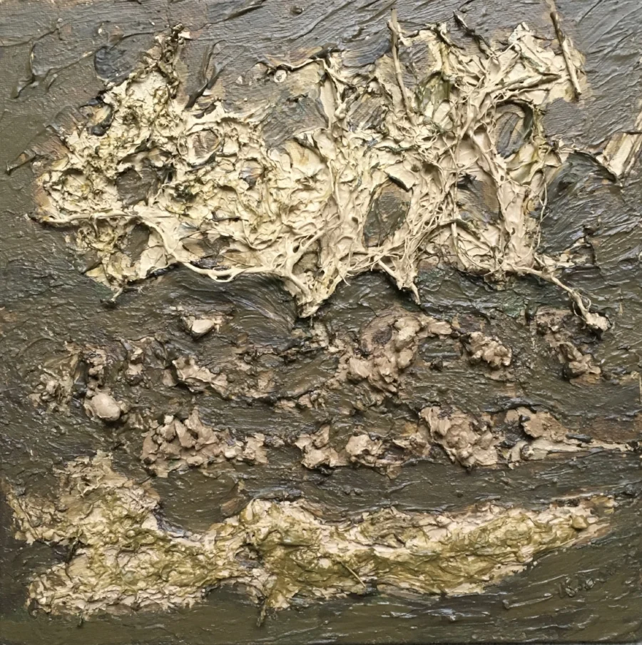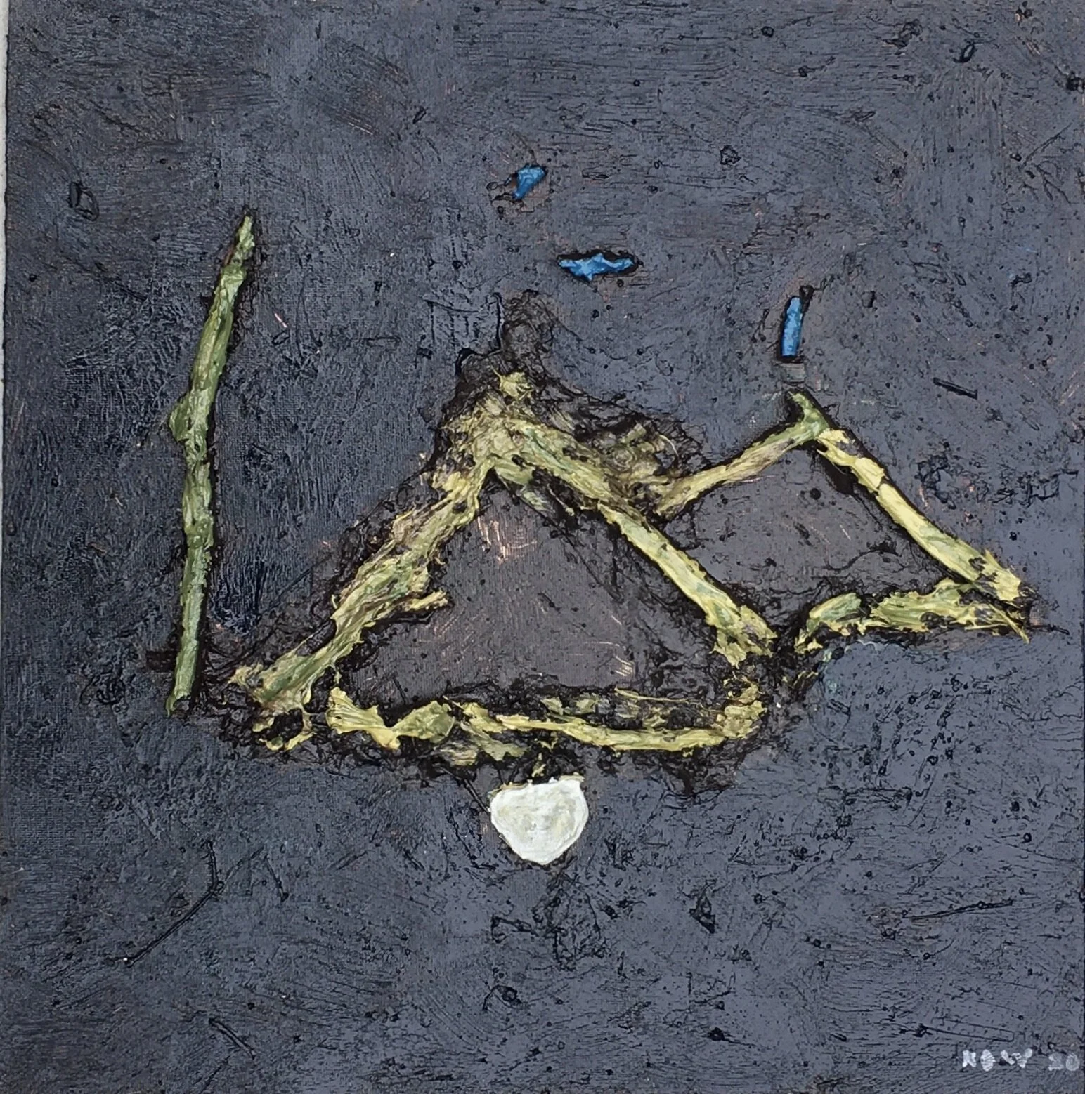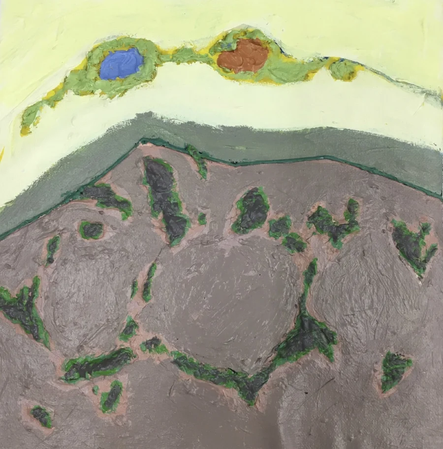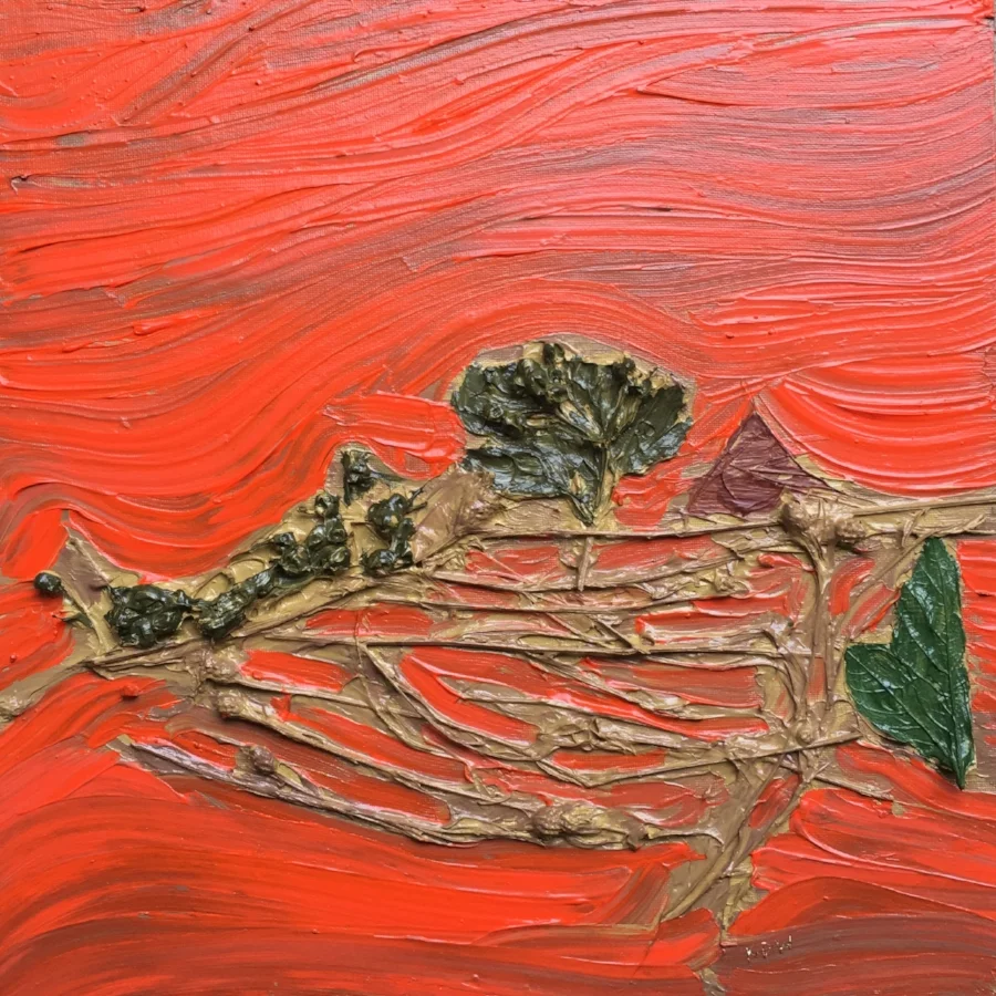 These artworks were apart of the “Land and See” exhibit for the 2021 Garage Gallery Benmiller Season. Of the 6 panel boxes below, the first one was painted outside the fenced area of the beach while it was being repaired from the winter thaw. But as it turned out, those same fences were then used to keep people from entering the beach because of the covid restrictions. The remainder of the 5 panel boxes below were completed intuitively in the studio with the materials from the above raked debris and detritus on the beach road near Cove Beach, Goderich ON.