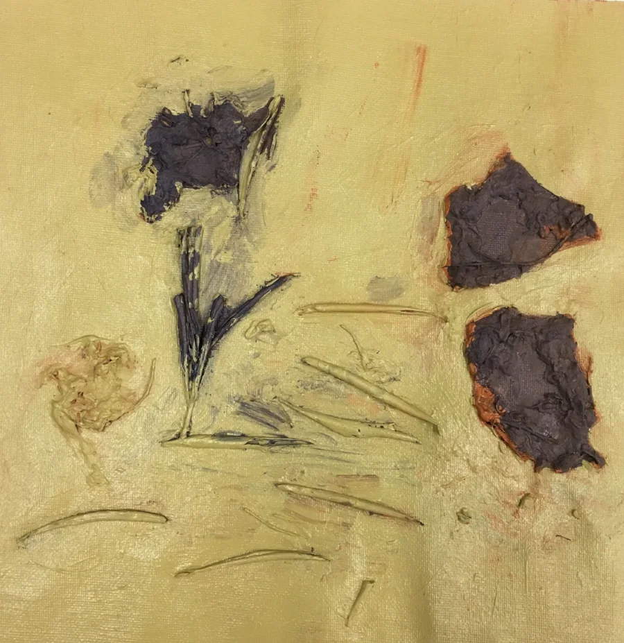 One day during a blustery winter day when I usually finish up stitching on my fibre paintings or varnishing them, I decided to paint with the fibre of the flowers my husband had brought home to me. They were starting to wilt in the vase and I thought instead of composting them, I could use them in the same manner as the outdoor fibrous materials when the weather is warm, so the images below depict the flowers in the same manner as my "en plein air" fibre paintings. Like my "en plein air" they take on the metaphors of the place they are in..... a really different kind of 'still life' painting. Again- my personal memento.