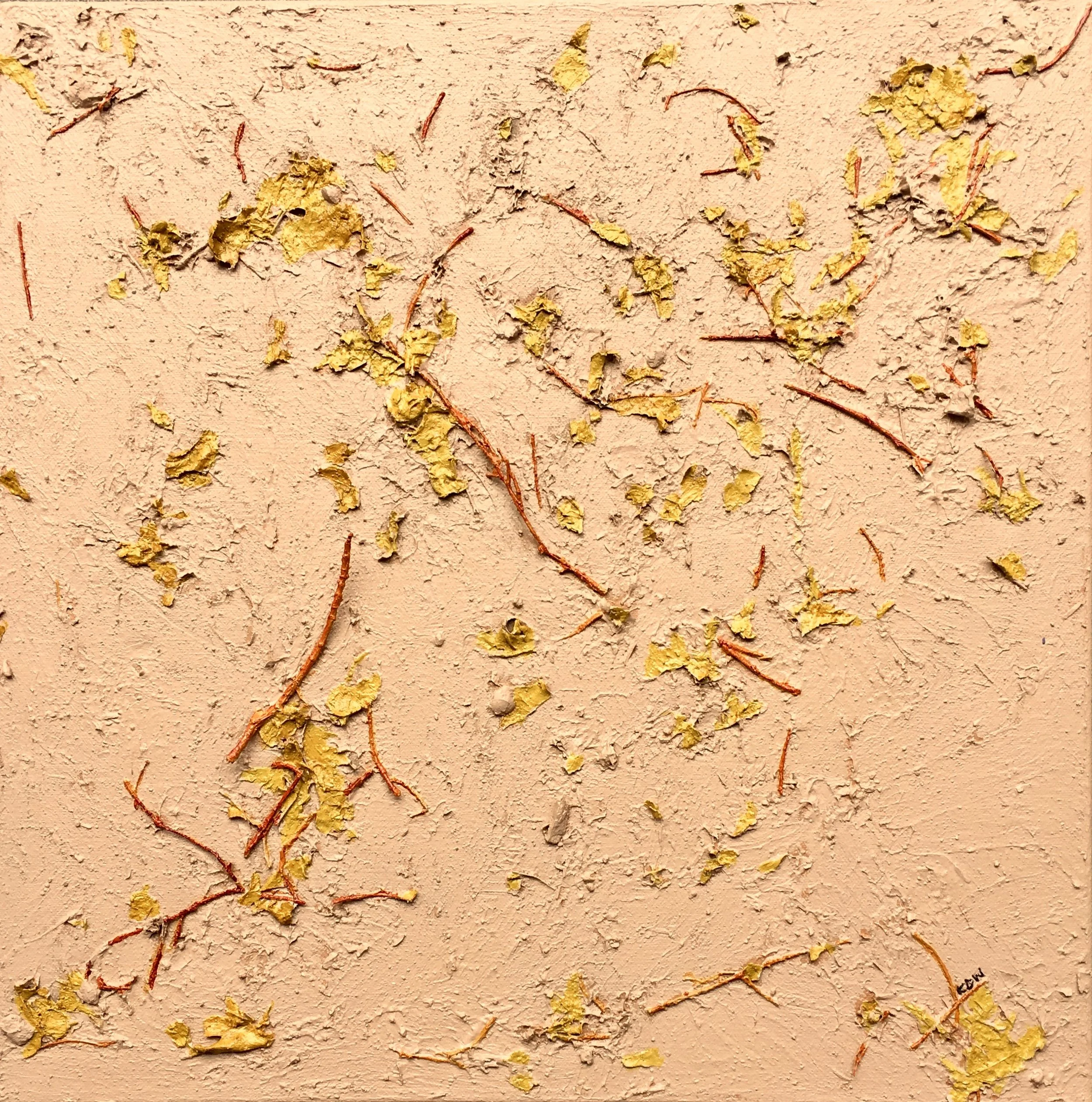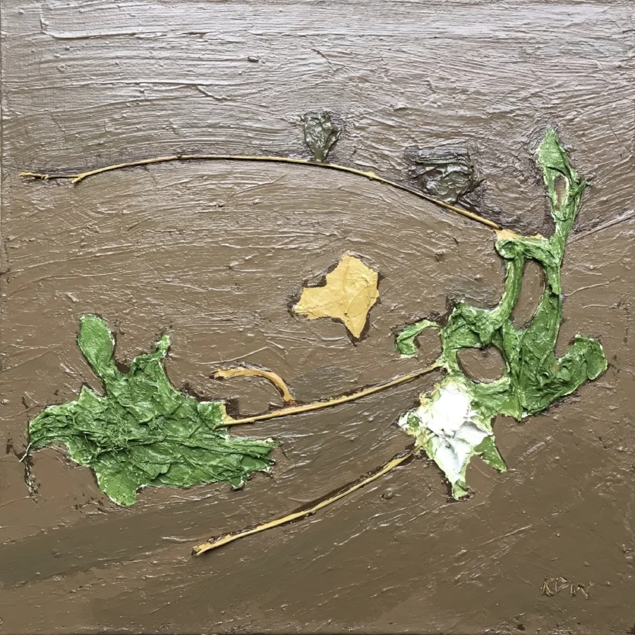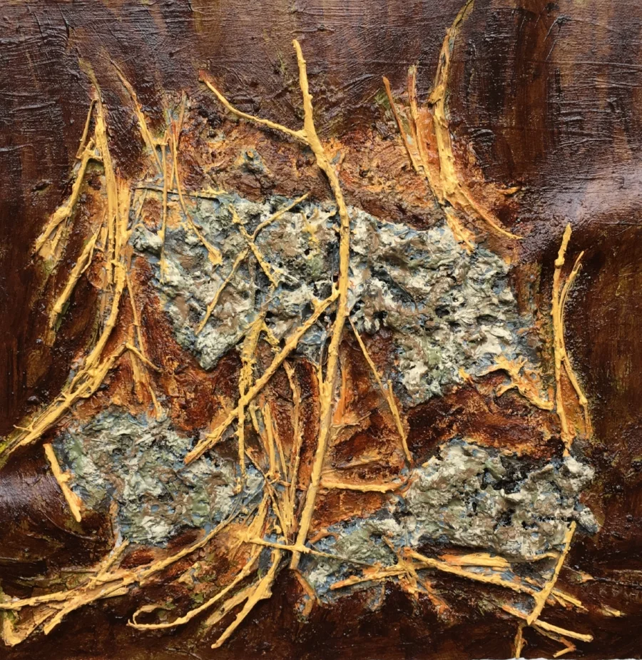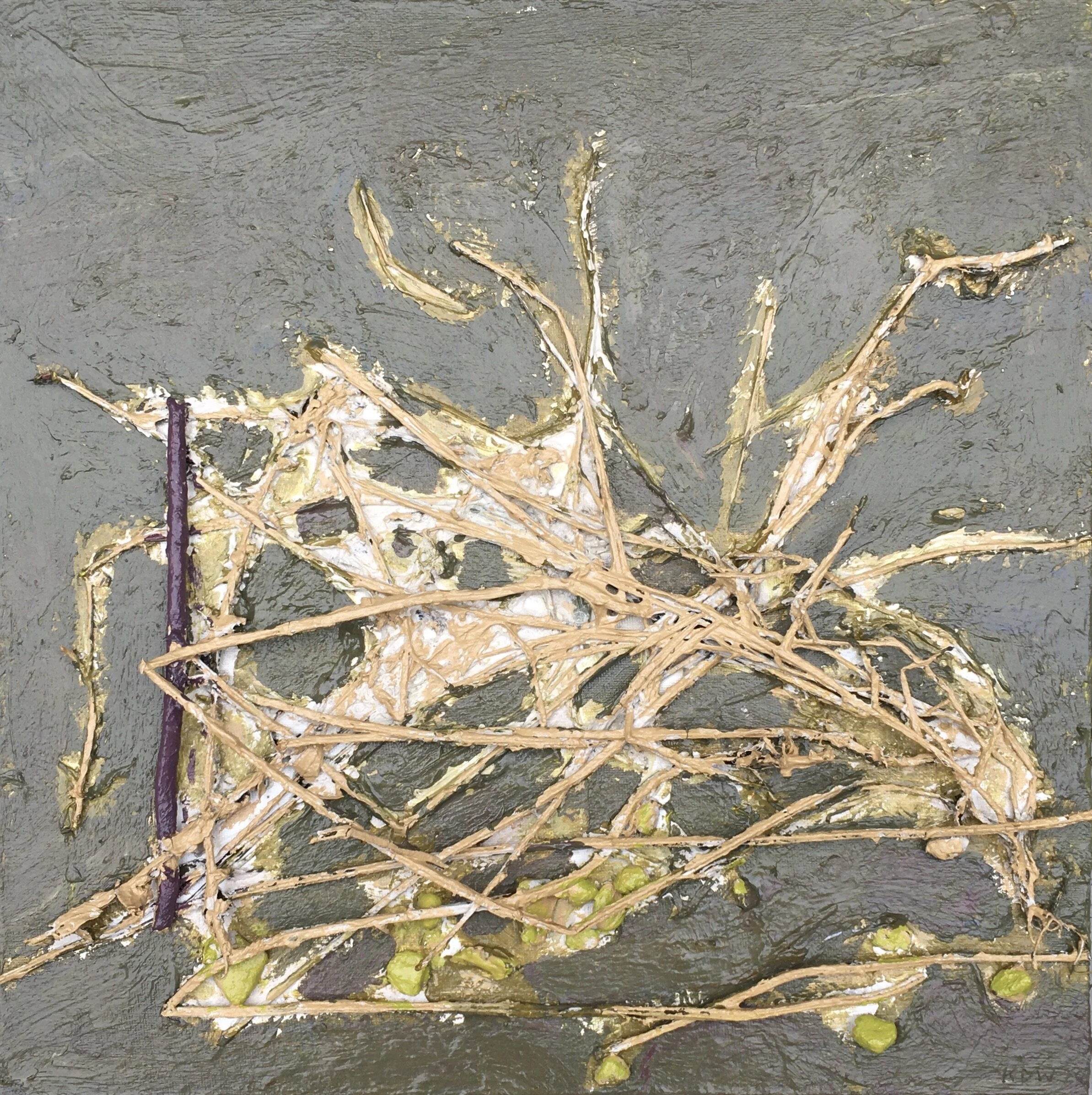 Most of these canvases include raw cotton which I found at La Fratta in Sinalunga, Tuscany, Italy, but some of them also contain leaves, flower pedals and even cob webs. The last image below shows the raw cotton - which was serendipitous, since it is the base material for string, roping and cloth. Each painting is approximately 11 inches by 11 inches. They are all framed. 'Walk the Arts' has done a Blog Post on my process and you can see it here.