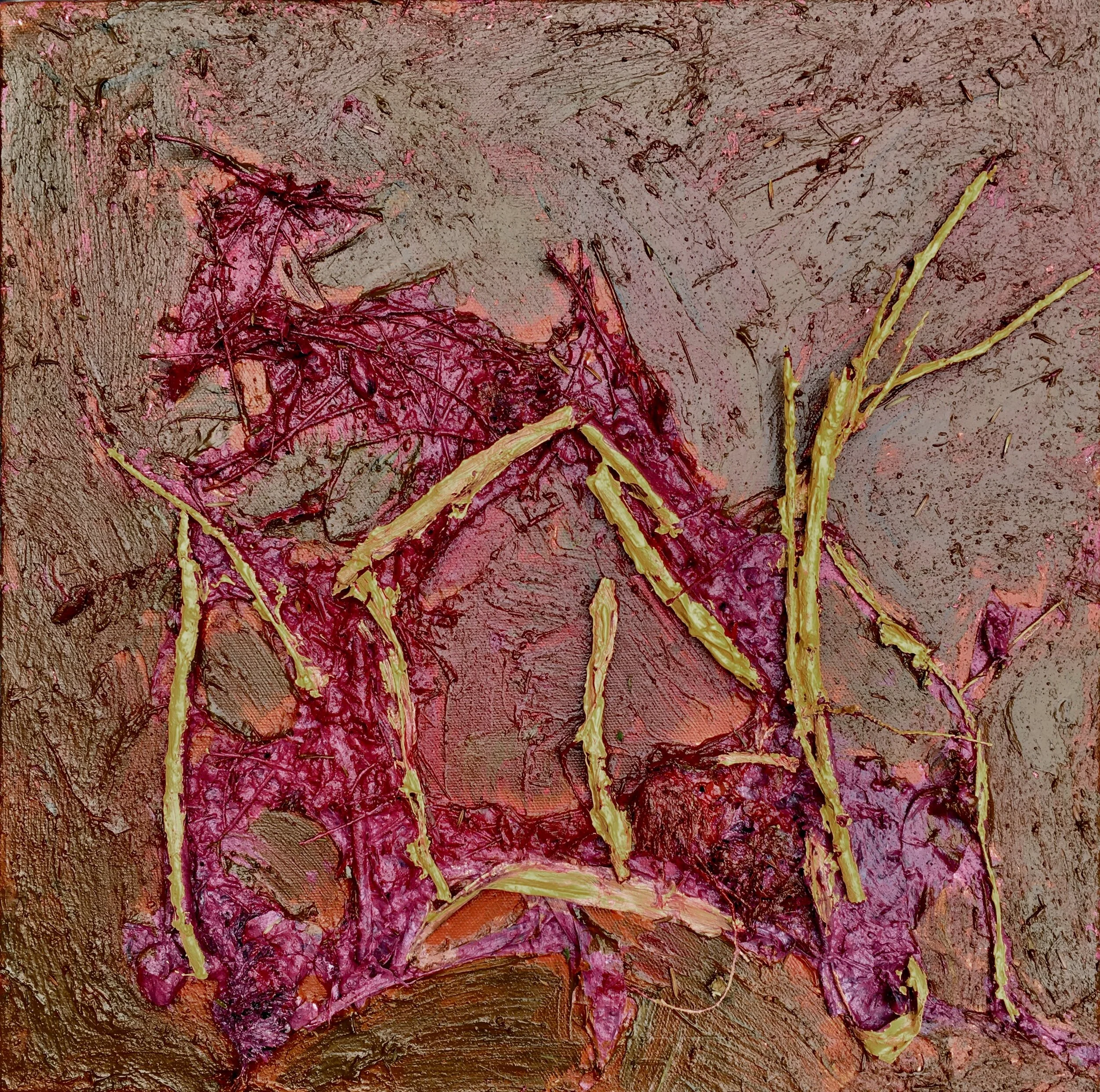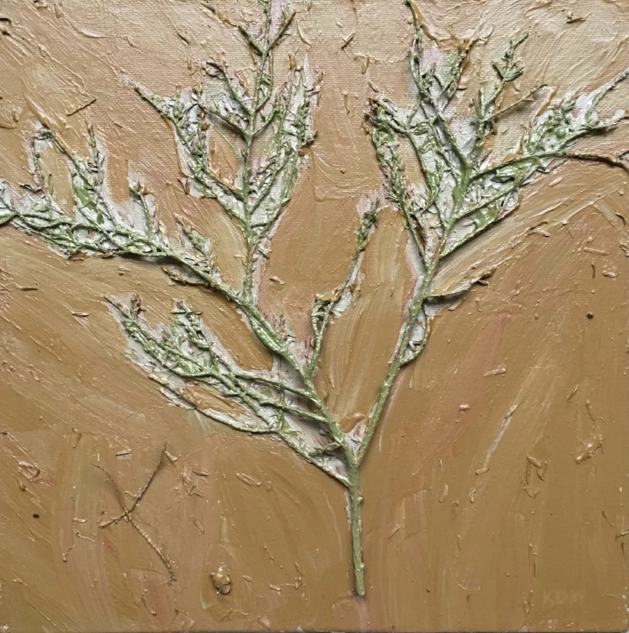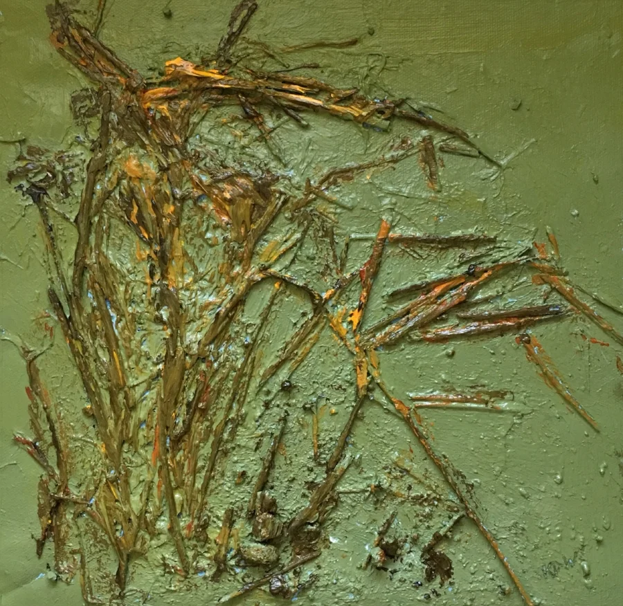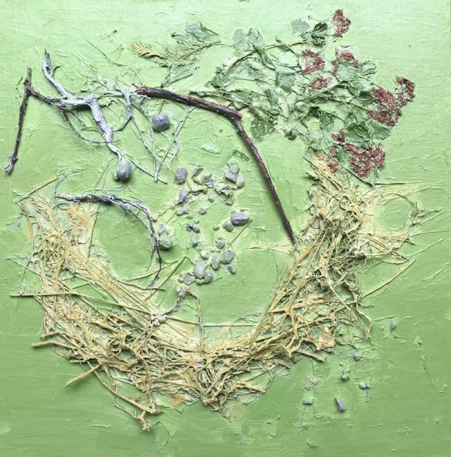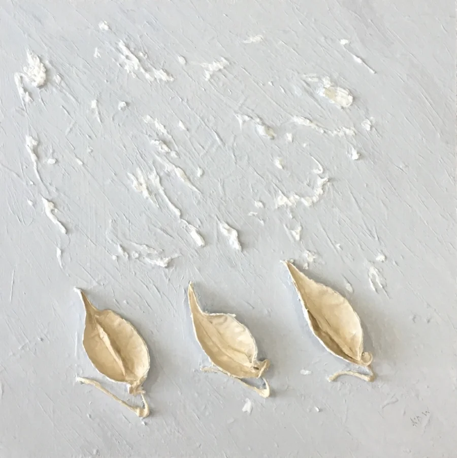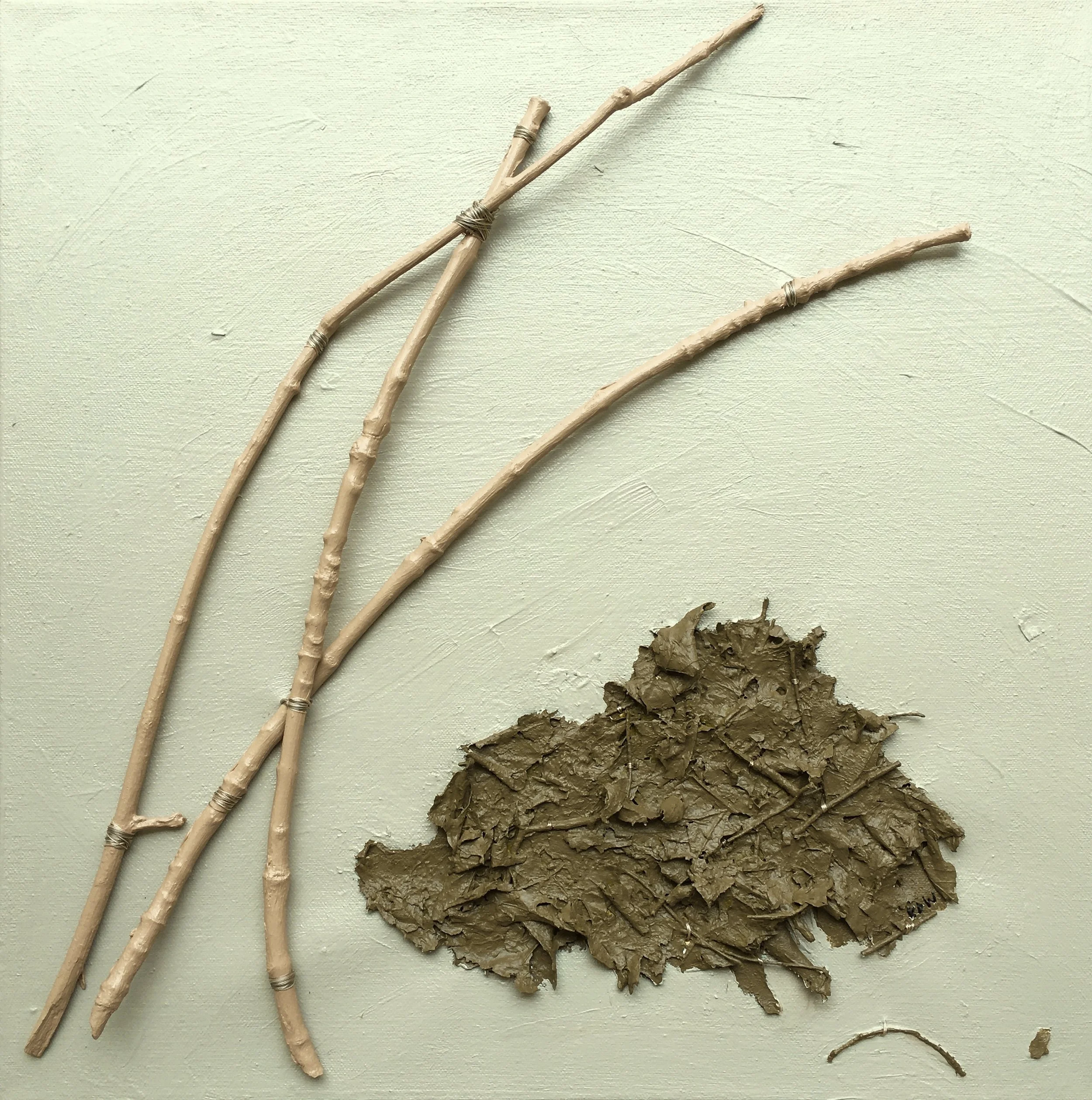 Most of these canvases include raw cotton which I found at La Fratta in Sinalunga, Tuscany, Italy, but some of them also contain leaves, flower pedals and even cob webs. The last image below shows the raw cotton - which was serendipitous, since it is the base material for string, roping and cloth. Each painting is approximately 11 inches by 11 inches. They are all framed. 'Walk the Arts' has done a Blog Post on my process and you can see it here.