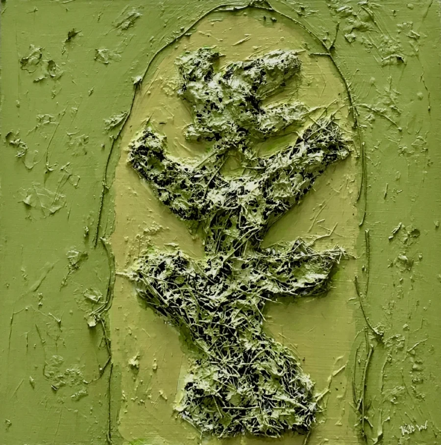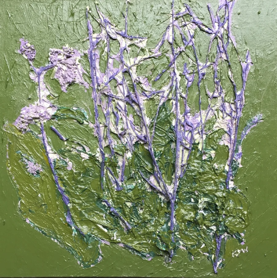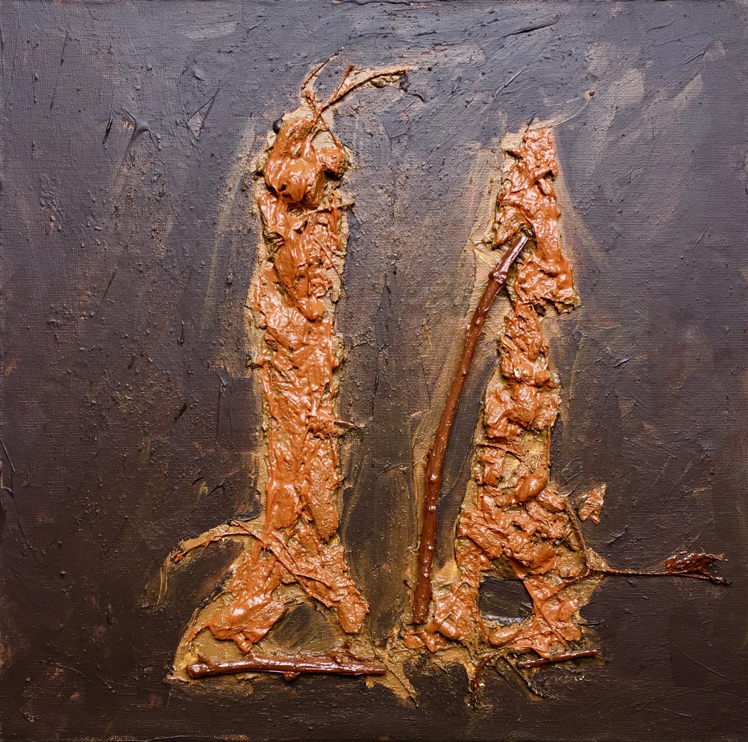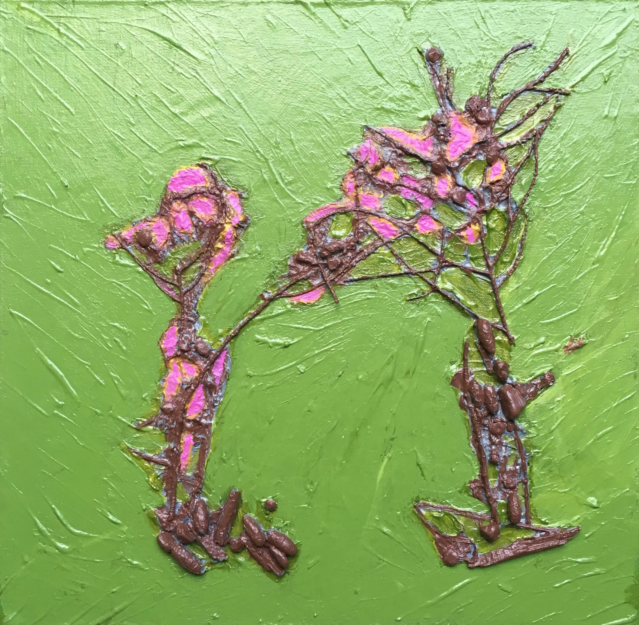 Most of these canvases include raw cotton which I found at La Fratta in Sinalunga, Tuscany, Italy, but some of them also contain leaves, flower pedals and even cob webs. The last image below shows the raw cotton - which was serendipitous, since it is the base material for string, roping and cloth. Each painting is approximately 11 inches by 11 inches. They are all framed. 'Walk the Arts' has done a Blog Post on my process and you can see it here.